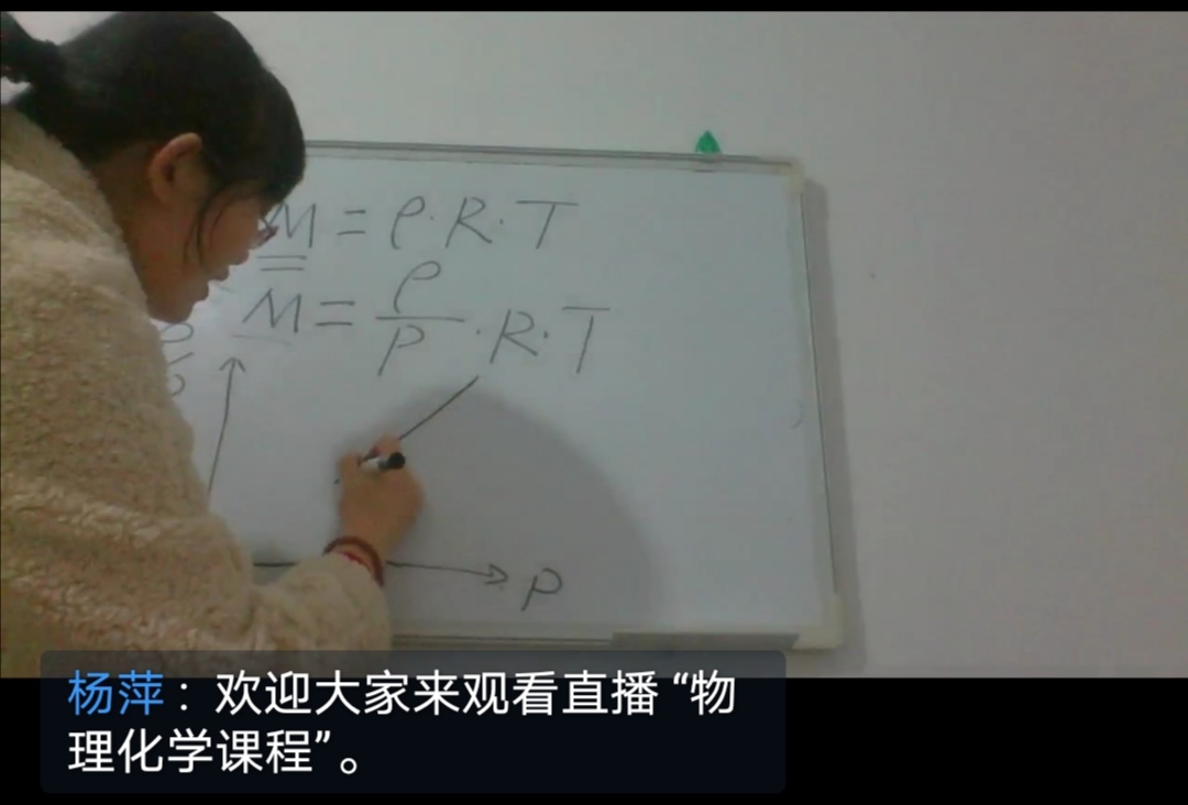 为做好“停课不停学”,她提前试用目前网上各种教学直播平台,通过摸索她发现要尽可能模拟现场教学模式,于是从网上订购了一块白板,在教学中便于复杂公式的推导;同时,听取试听学生的意见,又购买了一台摄像头,提高直播效果。经过多个平台的试用,她选取了钉钉直播平台讲课,还提前组织班级同学模拟演练,讲到复杂公式推导时,在白板上用写字笔现场推导演示,取得了非常好的效果。她还通过举手提问方式与学生互动,现场回答学生的疑问,还通过签到功能进行课堂考勤。一节课结束后,同学们纷纷表示这种方式新颖活泼,比在教室上课不差多少,得到学生一致好评。