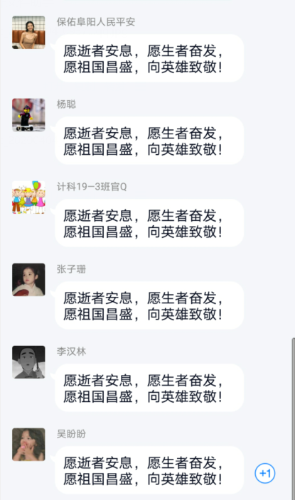 默哀结束,为更好凝聚青年力量,学习战役青春榜样,2019级计算机3班团总支组织学生以QQ群“线上直播+互动”的形式积极观看CCTV13频道直播,开展“缅怀·致敬”为主题的云团课,并以自己的方式致以最高的敬意。同学们纷纷通过写下致敬缅怀词、网上献花等方式表达对抗疫英雄的崇敬之情。