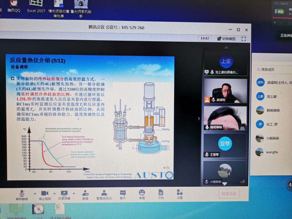 疫情期间为保证一流学科奖补资金按计划实施和执行,规范仪器采购,5月21日下午,化学工程学院组织召开拟采购进口设备校外专家线上线上论证会。邀请了淮南师范学院王凤武教授、淮南联合大学董海丽教授、安徽建筑大学王亚琴教授、蚌埠学院满云高级工程师和安徽八公律师事务所韩明律师等组成论证专家组。会议由化学工程学院副院长武成利主持。