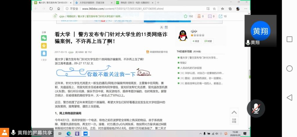 学院要求各年级辅导员结合此次“防范网络诈骗”线上安全教育活动,在所带学生中及时学习贯彻2020年全国“两会”精神,积极学习宣传贯彻民法典律知识,了解国家法律体系,增强学生学法守法、依法维权和自我保护的法制观念。