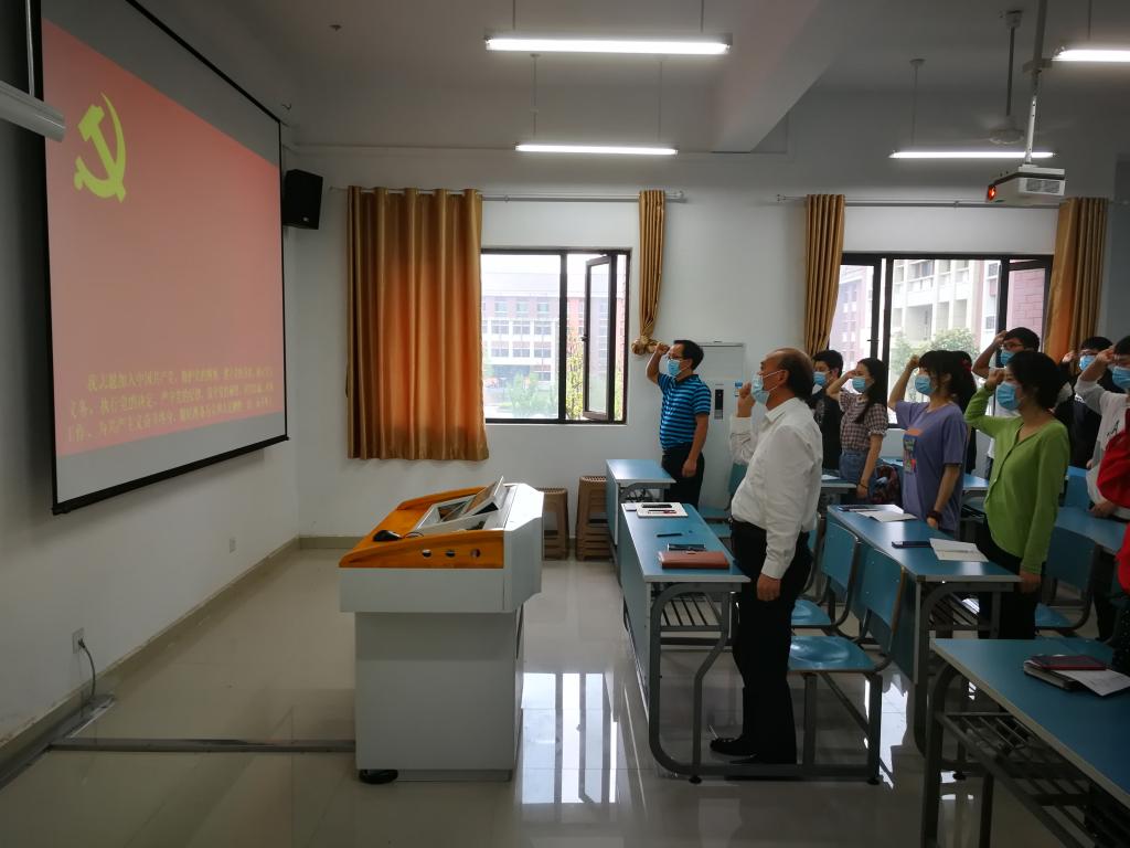 在金德的带领下,81名毕业班党员面对鲜红的党旗,庄严宣誓,重温入党誓词,立誓为共产主义奋斗终身。