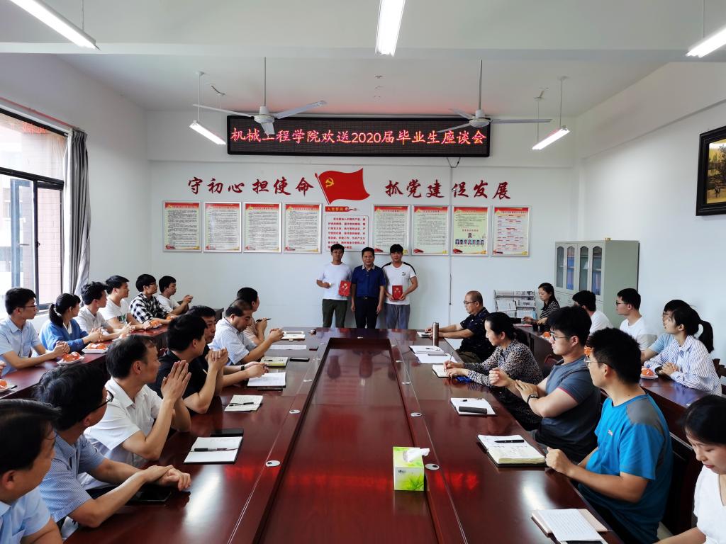 6月24日下午,机械工程学院欢送2020届毕业生座谈会在励学楼A433会议室召开。学院班子成员、各系主任、各党支部书记、辅导员和23名2020届本科生、硕士研究生代表参加座谈会。院党委副书记张岚主持座谈会。