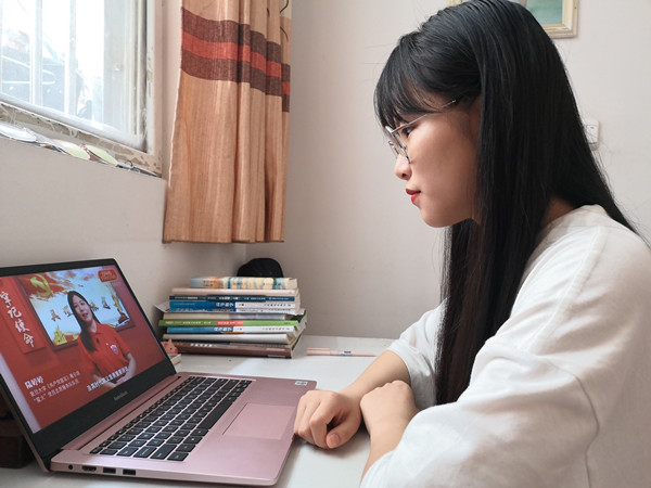 学生线上收看“七一”专题战“疫”示范微党课(学生提供)