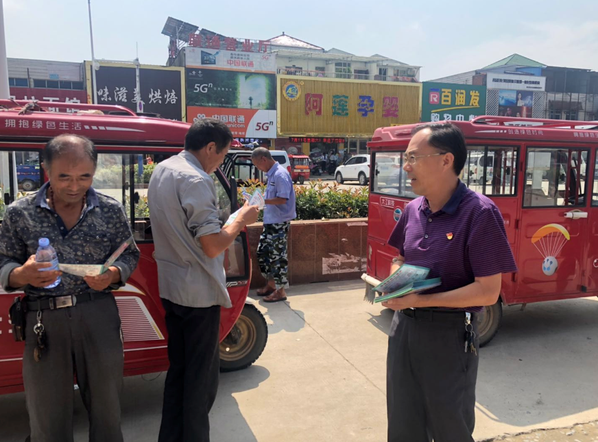 7月16日下午,人事处党员志愿者来到毛集镇兴湖路附近的居民区开展防疫宣传活动,引导群众做好疫情期间的个人安全防护工作。