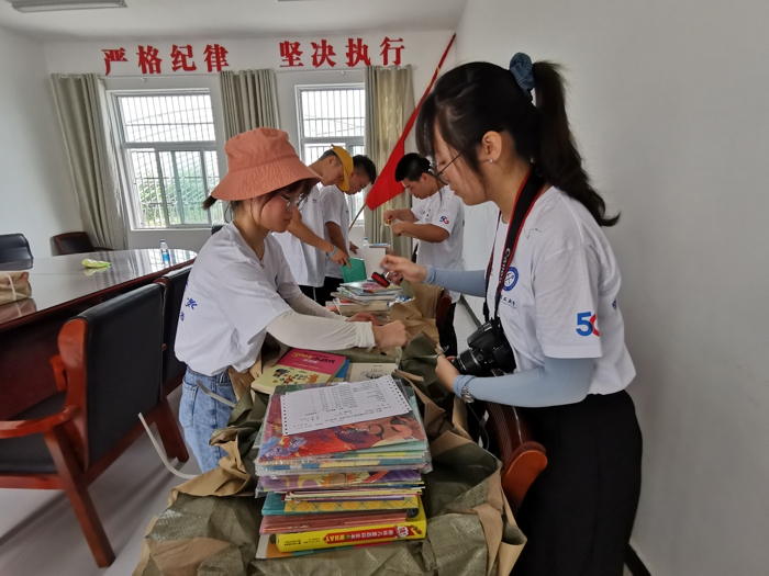 捐赠一批书籍,助力扶智行动。志愿者们将价值800余元的图书精心消杀、整理,捐赠给南杨小村庄徐老小学“共青书屋”。据悉,南杨小庄村徐老小学“共青书屋”由电信学院团委于2017年设立,旨在为该所小学打造一个“充满书香、筑梦未来”的图书馆,设立4年来受到当地广大师生的欢迎和好评。志愿者在徐老小学开展“服务性劳动”,普及安全知识、开展亲情陪伴、举办趣味活动、捐书赠明信片等爱心支教活动,他们用汗水浇灌希望,真情关爱留守儿童,丰富农村留守儿童暑期生活。