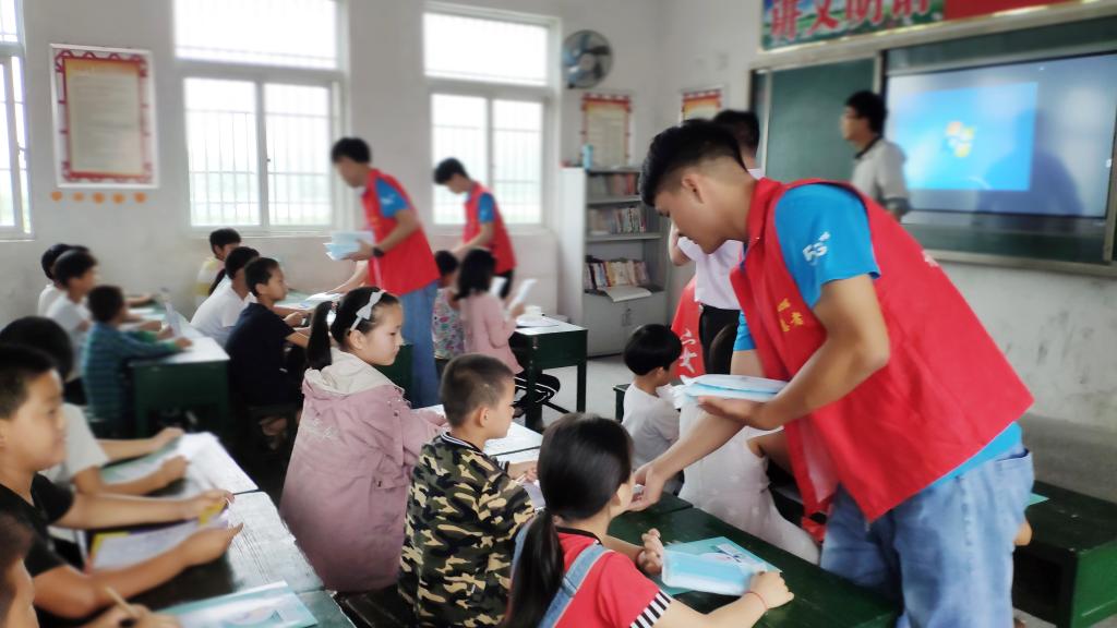 心系留守、爱心捐赠助力脱贫攻坚。活动结束后,志愿者们还赠送给孩子们防疫口罩、儿童书籍、笔记本、文具等暖心物品。小朋友们纯真活泼、积极互动,收到自己喜欢的书籍文具时,一双双纯净的眼睛闪烁着璀璨绚丽的光芒,充满了对学习的向往和获得知识的喜悦,让简陋平凡的教室一瞬间星光熠熠。