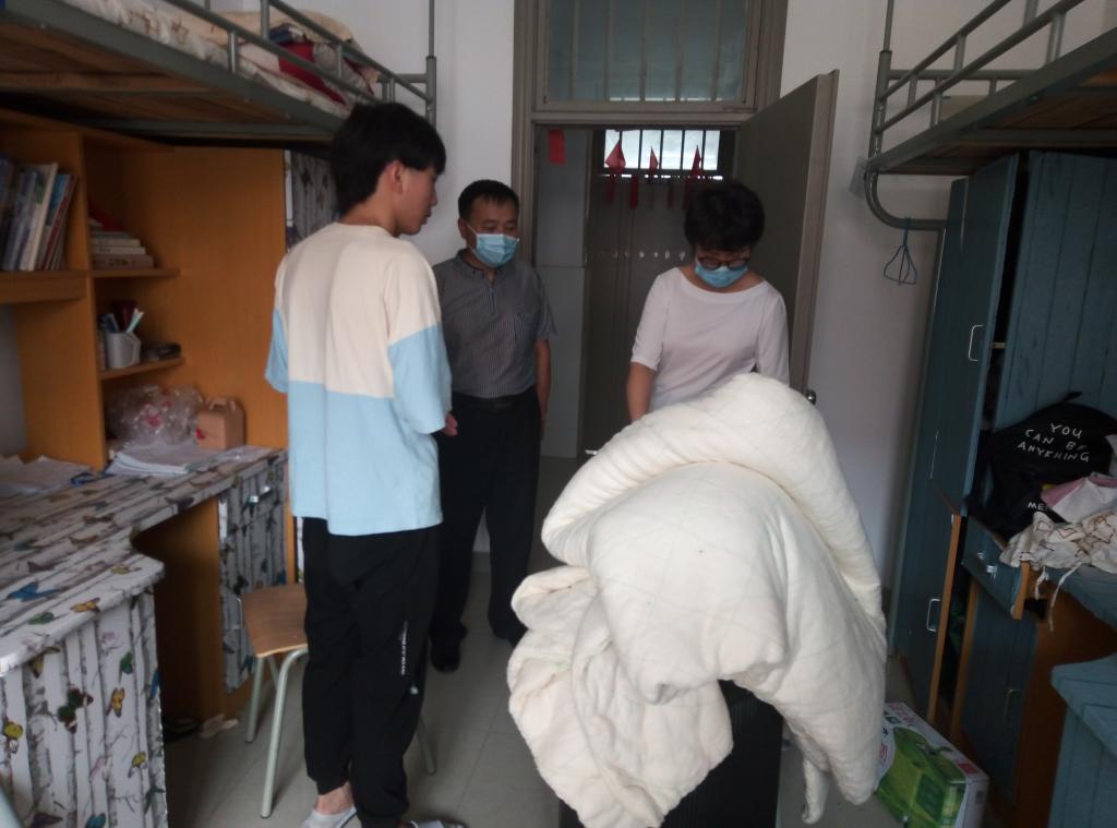 8月28日上午,力物学院党委书记石秀光、党委副书记张可佳及辅导员等深入学生宿舍,看望返校学生。