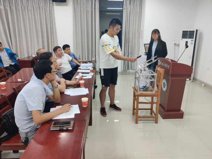 各组结合PPT、实物、图纸、说明书和动画,从作品的设计背景、思路、创新点与应用前景等方面,依次汇报了备战省赛的最新进展。与会专家结合汇报情况,指出了其中存在的问题与不足,并给予了宝贵的修改与完善建议。
