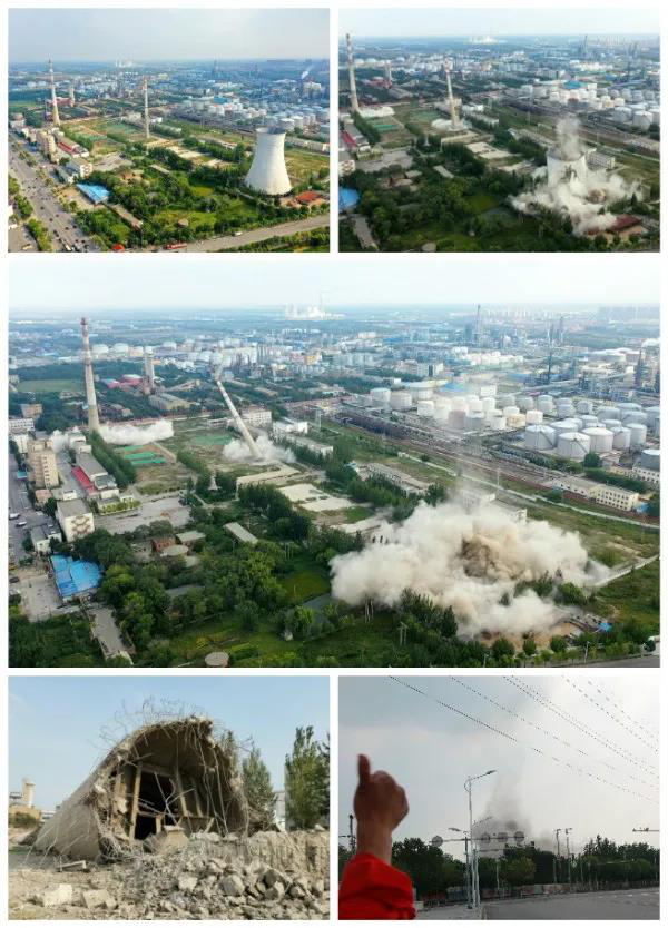 9月11日15时许,随着现场指挥长一声令下,辽河油田电力分公司原热电厂三座150米、120米、90米高的烟囱和一座70米高的钢筋混凝土凉水塔顷刻间轰然倒下,成功爆破拆除。