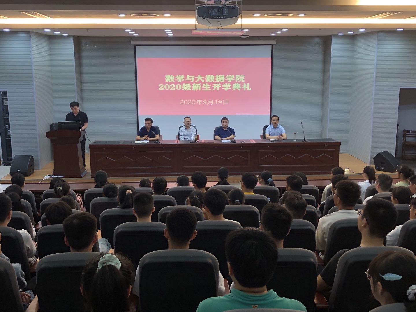 9月19日上午,数学与大数据学院在校图书馆三楼报告厅举行了2020级新生开学典礼。学院领导班子、学院教师代表、老生代表、辅导员和2020级本科及研究生全体新生参加了典礼。学院党委副书记兼行政副院长李勇主持典礼。