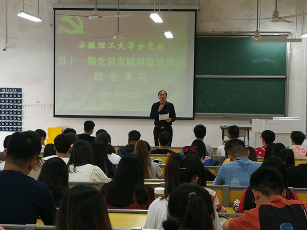 结业典礼上,能源与安全学院党委书记、分党校校长华心祝对顺利完成本期培训班学习的学员表示祝贺。他希望学员继续加强理论学习,坚定理想信念,深刻学习领会习近平总书记考察安徽重要讲话的丰富内涵和精神实质,坚决把思想和行动统一到习近平总书记重要讲话精神上来;在学习实践中加强锻炼,秉承校训和校园精神,发扬矿业人“特别能吃苦、特别能战斗、特别能奉献”精神,不断提高综合素质,弘扬抗疫精神,奋力拼搏,为学校“双一流”创建贡献力量;坚持以党员标准严格要求自己,发挥先锋模范作用,以实际行动争取早日加入党组织。