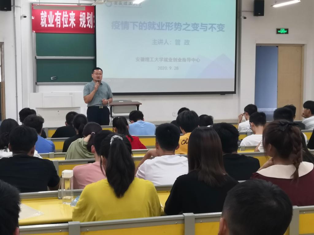 9月28日下午,省级“启明星”就业指导专家进校园活动在明理楼206教室举行。正德人力集团董事长、合肥市人力资源服务协会会长管政博士作了题为《疫情下的就业形势之变与不变》的讲座。来自全校的140余名师生聆听了讲座。