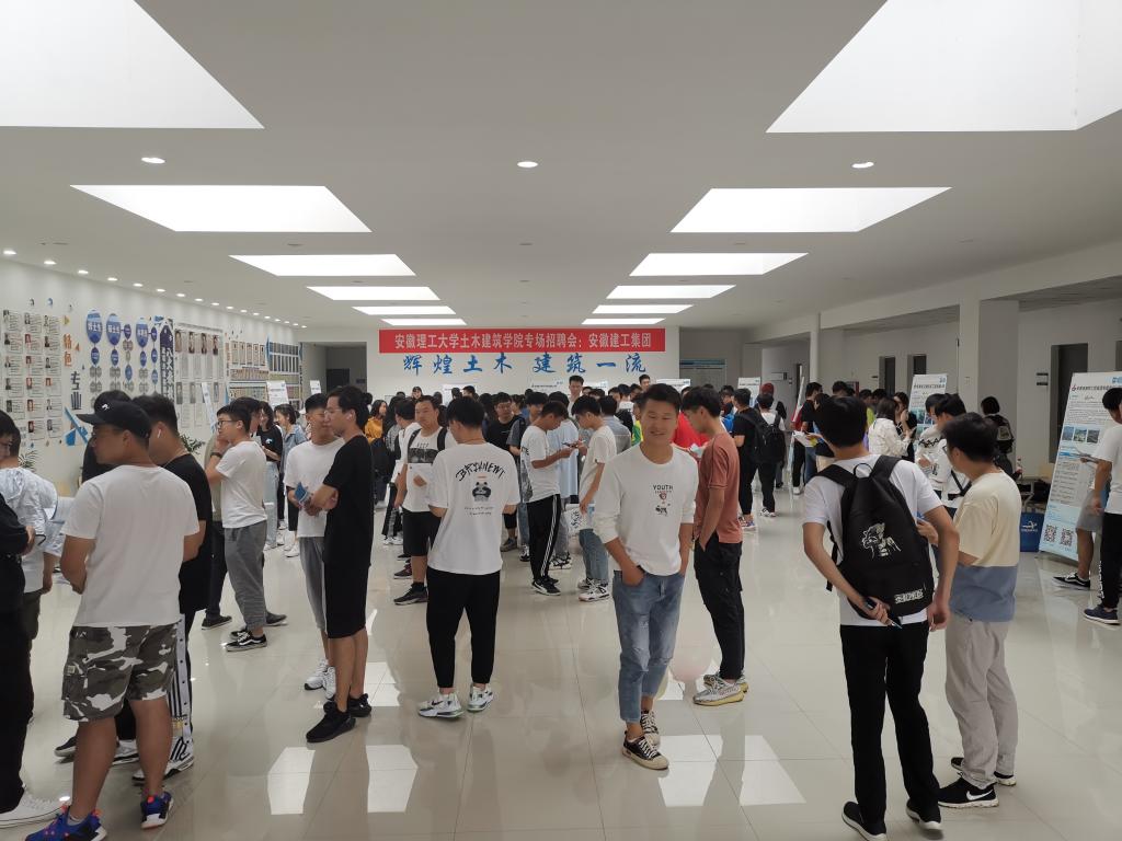 9月28日下午,土木建筑学院在学院求是楼大厅举办安徽建工集团专场招聘会,安徽建工集团下属13家企业来校招聘,选聘学院2021届优秀毕业生。招聘会吸引了包括土木工程、城市地下空间、工程造价、建筑环境等专业近百名未就业本科毕业生前来应聘。