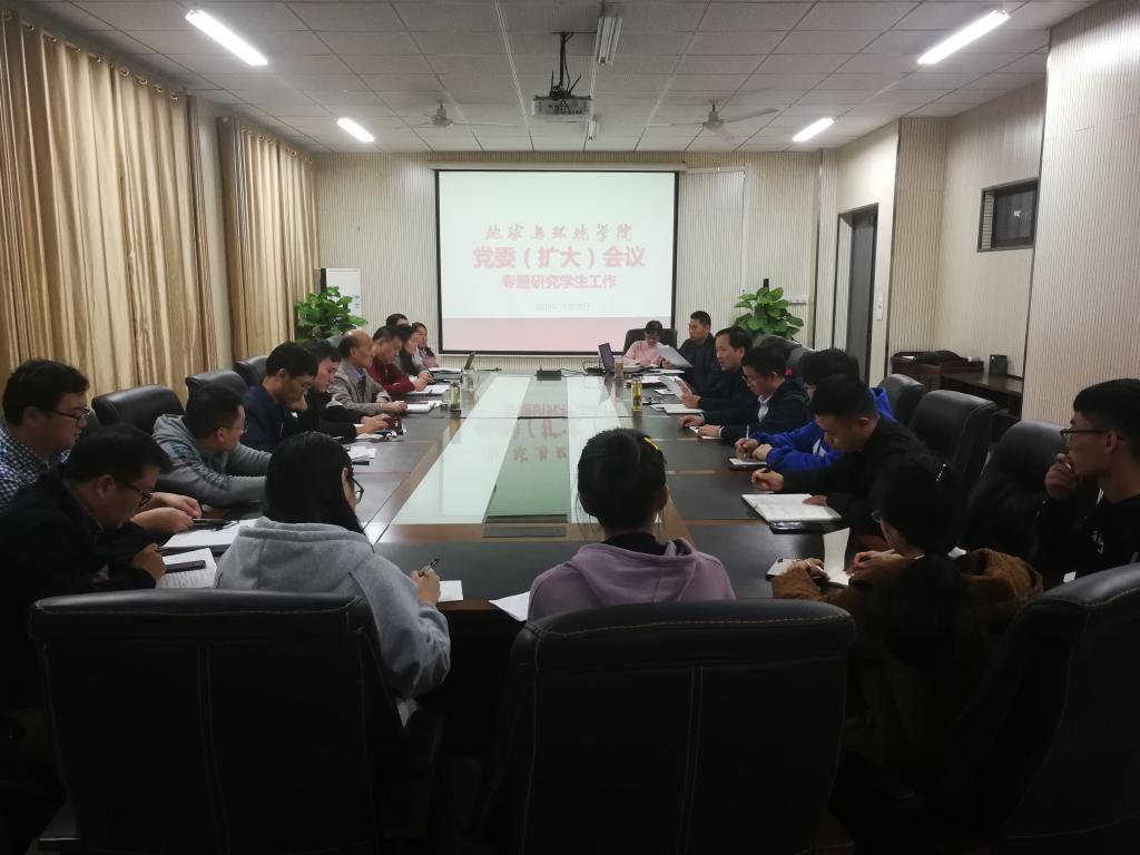10月15日晚,地球与环境学院在静远楼414会议室召开党委(扩大)会议,专题研究学生教育管理工作。学院领导班子、各系主任、全体科级干部、辅导员以及各团学组织负责人参加了研讨会。