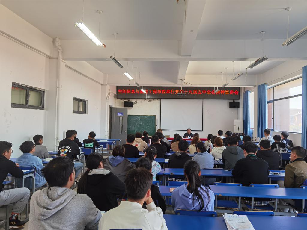 11月13日下午,空间信息与测绘工程学院党委书记吴军在北512报告厅宣讲党的十九届五中全会精神。学生支部书记、学生党员、部分党员发展对象参加了宣讲会。