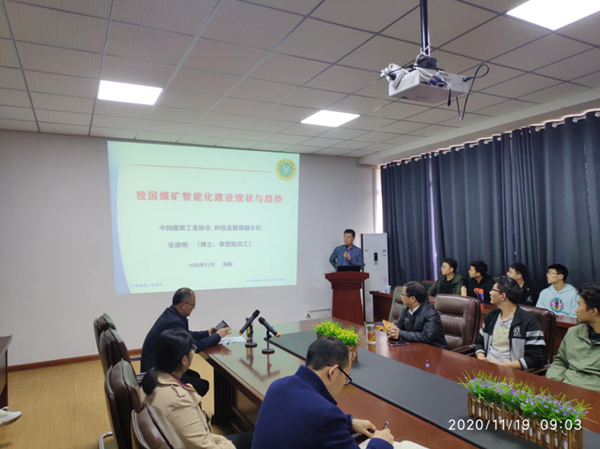 11月19日上午,电气与信息工程学院邀请中国煤炭工业协会教授级高工张建明来院在励行楼B407报告厅作题为《我国煤矿智能化发展现状与展望》的学术报告。学院相关学科教师、研究生100余人参加报告会。讲座由学院执行院长周孟然主持。