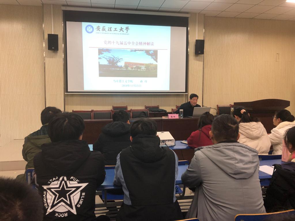孙功教授紧扣主题,从党的十九届五中全会召开背景、主要成果、起草情况、突出特点和亮点、大会内容要点、核心要义、必须坚持党的领导等七个方面对十九届五中全会精神进行了全面系统的解读,使师生们深刻地认识到十九届五中全会的重大意义和深刻内涵,为进一步理解并贯彻落实五中全会精神开阔了思路和视野。