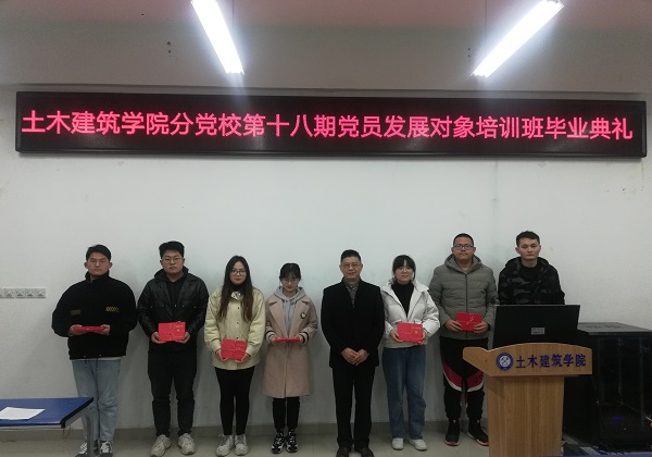 12月2日下午,土木建筑学院分党校在求是楼南227教室举行第十八期党员发展对象培训班毕业典礼。院党委书记、分党校校长徐冬生出席典礼并为学员代表颁发毕业证书。毕业典礼由学院党委副书记赵军主持。培训班班主任、辅导员、培训合格学员160余人参加了毕业典礼。