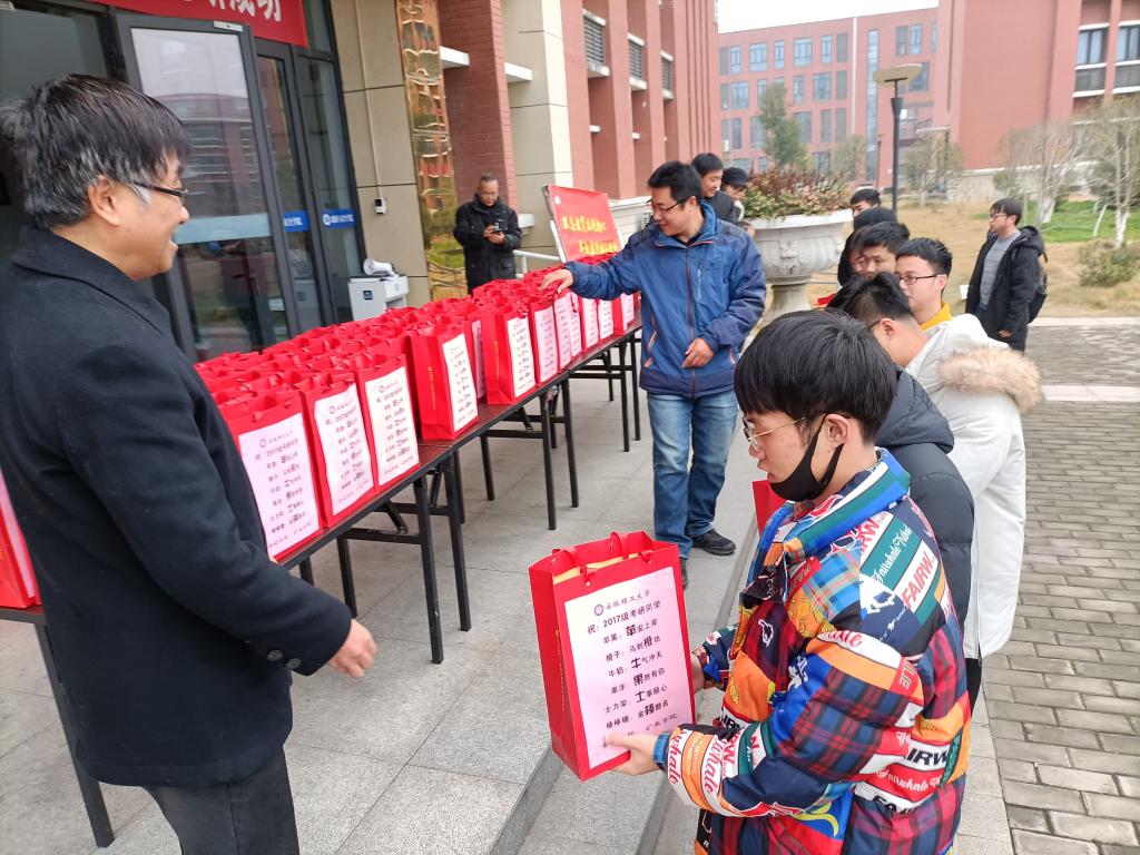 为鼓舞考研学子信心,缓解学生考前压力,12月9日中午,安全科学与工程学院和矿业工程学院在宁远楼门前广场开展了2017级考研学子慰问活动。矿业学院党委副书记张向林、副院长张坤、原能源与安全学院副院长袁树杰和2017级辅导员参加了活动。