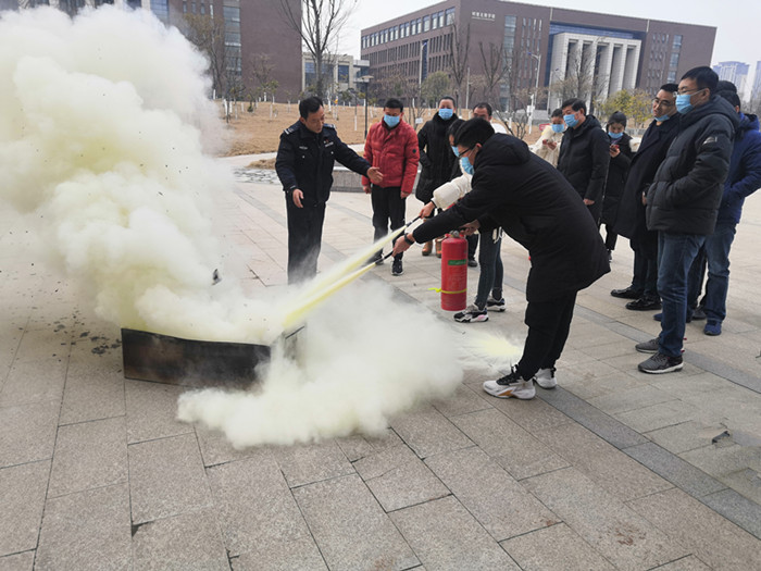 校保卫处消防科彭广峰老师首先进行了消防安全知识培训,讲解了消防安全工作的重要性、介绍了灭火器的分类及使用方法,并现场进行灭火示范。教职工按照“一看、二摇、三拔、四摁”的程序对灭火器的使用进行实战演练,掌握消防器材的使用方法和技巧。培训结束后,全体教职工按照指定的安全线路进行了应急疏散演练。