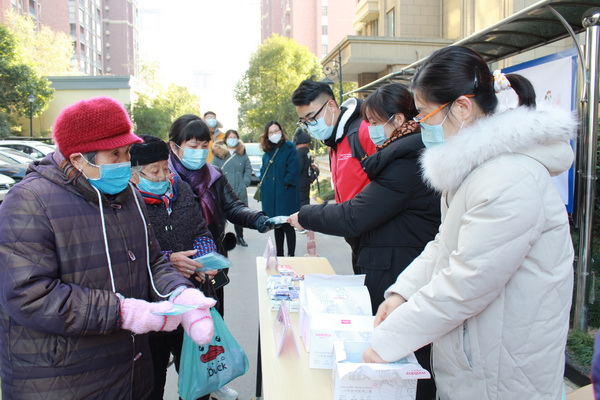 向小区居民发放防疫物品
