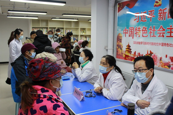 在社区党群服务中心门前,参加活动的师生在小区宣传栏上张贴了疫情防控和健康知识宣传海报,向小区居民发放防疫物品和常用药品。在社区服务中心,党员发挥专业优势为社区居民进行血压测量、心脏听诊等健康检查,同时提供疫情防控和健康咨询服务。