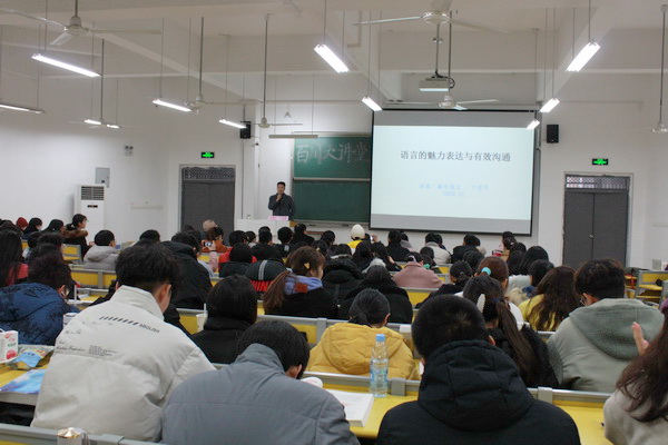 “您发微信是用文字还是用语音?”“您发语音之后,喜欢再听下回放吗?”……这是12月23日在明理102教室正在开讲的“百川大讲堂”,几项小调查,一下子激起了与会听众对语言的兴趣。当日下午,国家一级播音员、淮南广播电视台主播卞爱华应邀做客学校“百川大讲堂”,为师生代表们讲述《语言的魅力表达与有效沟通》。