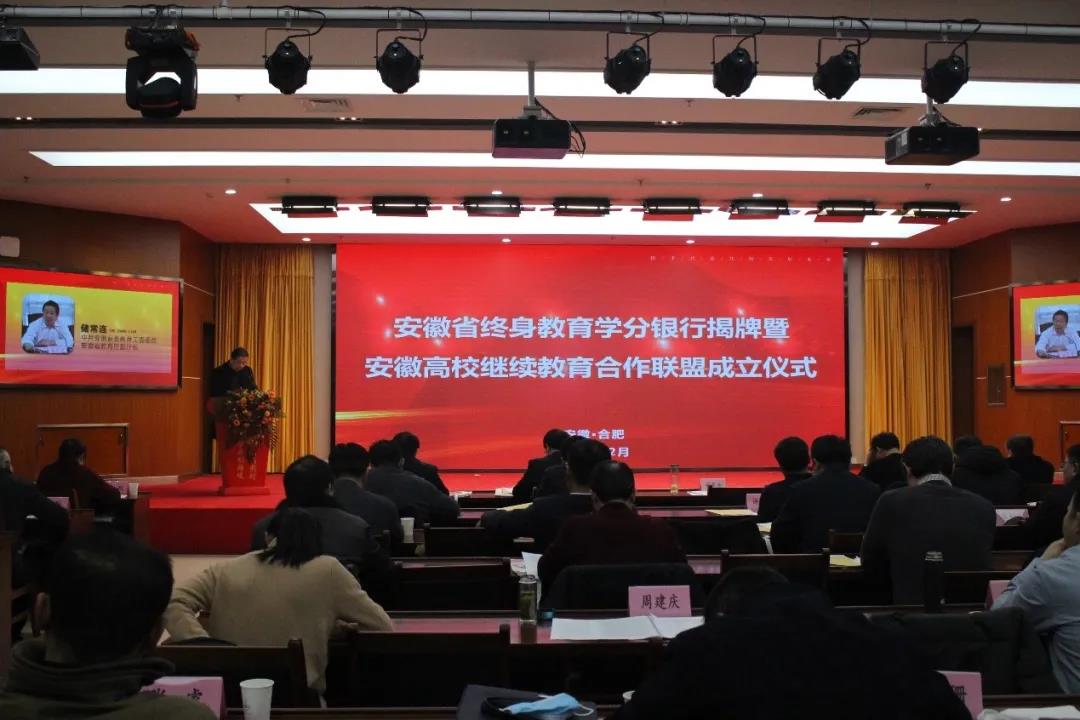 12月24日,安徽省终身教育学分银行揭牌暨安徽高校继续教育合作联盟成立大会在安徽广播电视大学隆重召开。省委教育工委委员、省教育厅副厅长储常连,省教育厅高教处处长张尔桂应邀出席会议。省内52所高校分管校领导及继续教育学院负责人,安徽继续教育网络园区管理中心、安徽省终身教育学分银行管理中心有关人员百余人参加大会。我校继续教育学院院长何昌珏参加会议。