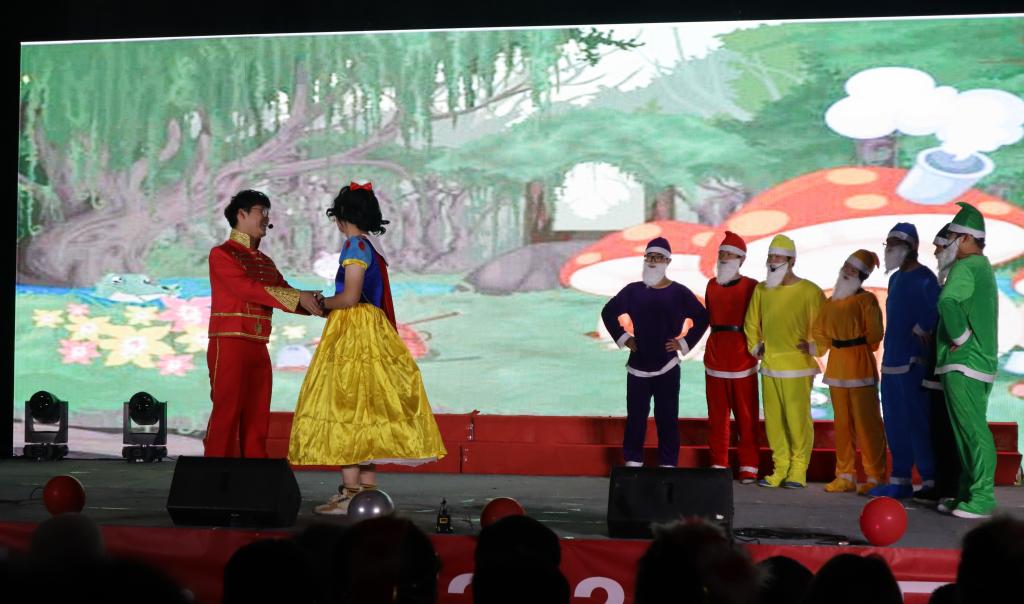 晚会由“致敬白衣山河无恙”“凛冬散尽星河长明”“少年心性意气风发”三大篇章组成。一曲弹唱《生活因你而火热》拉开了元旦晚会的帷幕;相声《小童星》、小品《白雪公主与七个小矮人(新编)》等语言类节目以风趣的言语、生动的表演,引得台下欢笑连连,互动不断;心理情景剧《致春》和手语表演《喜欢你》向奋战在抗疫前线的英雄们致敬;民族舞《心上的罗如》用优美的舞姿展现了退休教职工风采;现代舞《lovesick girls》将晚会推至高潮。令人心动的抽奖和游戏环节更是让现场沸腾,晚会在大合唱《夜空中最亮的星》的歌声中落下帷幕。
