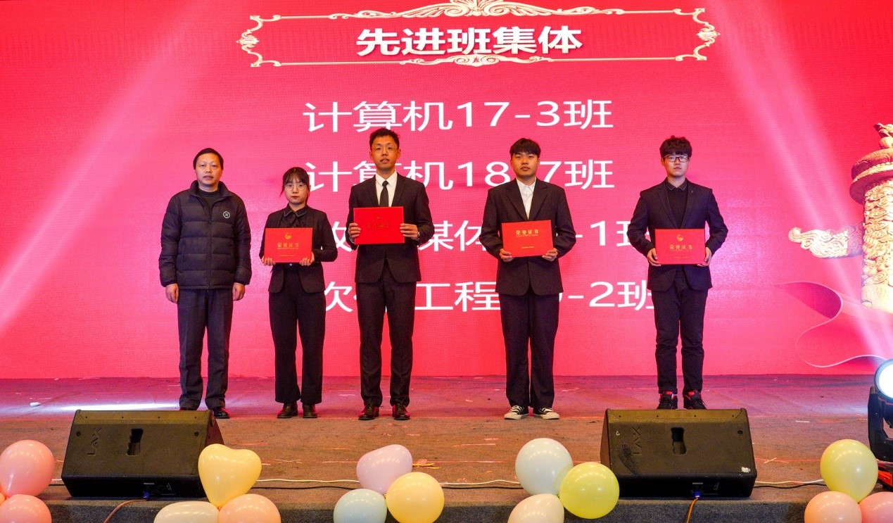 总结表彰大会在庄严的国歌声中拉开序幕。学院党委书记王永祥讲话,他从学院党建、学科建设、学生工作、学风建设、学科竞赛、团学活动等方面作了简要总结,用数据展示了计算机学院2020年度工作取得的成绩,对学院今后工作作出部署和期望,并为学院全体师生送上了新年祝福。执行院长方贤进宣读了《计算机科学与工程学院关于表彰2020年度学生工作先进集体和先进个人的决定》。先进集体和先进个人代表上台依次发言并领奖。