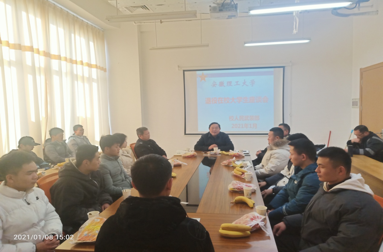 1月8日下午,校武装部在舜耕楼101室召开退役在校大学生座谈会。校武装部部长方运纪及武装部工作人员,20余名退役在校大学生参加了座谈会。
