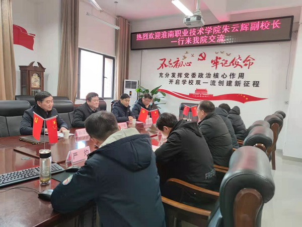 陆伟对朱云辉一行的到来表示热烈欢迎,并简单介绍了安全科学与工程学院教学、科研等方面的情况。朱云辉介绍了淮南职业技术学院的基本情况及专业建设。