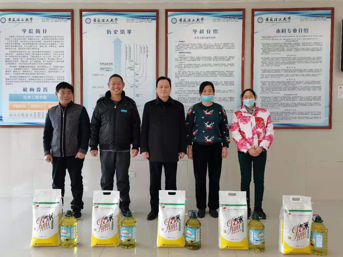 2月8日,化工学院领导走访慰问一线值班人员,了解假期值班、防疫、保洁等情况,向大家致以新春问候,并送上大米、食用油等慰问品。