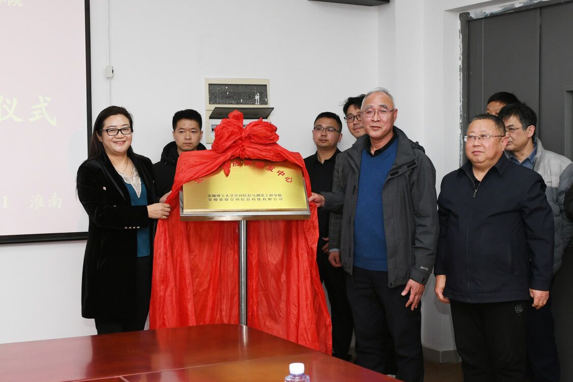 郑明东与盛鸣红共同为北斗创新应用中心揭牌;赵志根与盛鸣红代表双方签署了“空间信息与测绘工程学院与安徽前锦空间信息科技有限公司战略合作协议”和“校企合作共建北斗创新应用中心协议”。