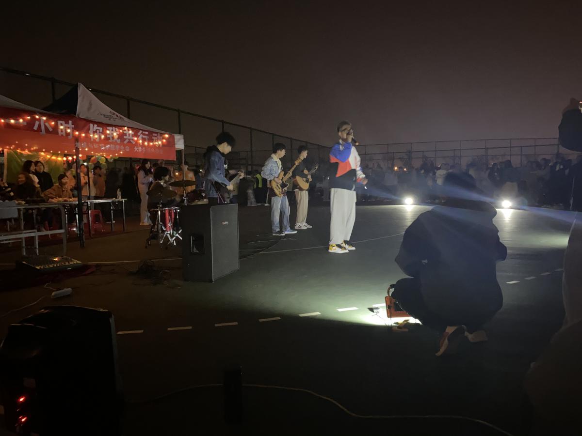 伴随着3、2、1……熄灯的口号,活动准时开始。随即操场上乐队声起,一场草地音乐会拉开帷幕,一首首激情的演奏温暖了初春微凉的夜空。深情婉转的独唱,诉说天空本来的颜色;活力四射的舞蹈、精彩的互动小游戏将活动推向了高潮。师生们在欢声笑语中度过了这特殊的一小时。