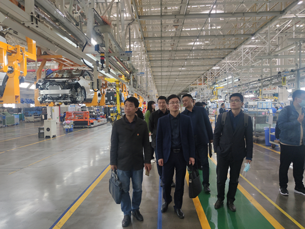 调研组参观新能源汽车生产线(摄影:赵佰亭)