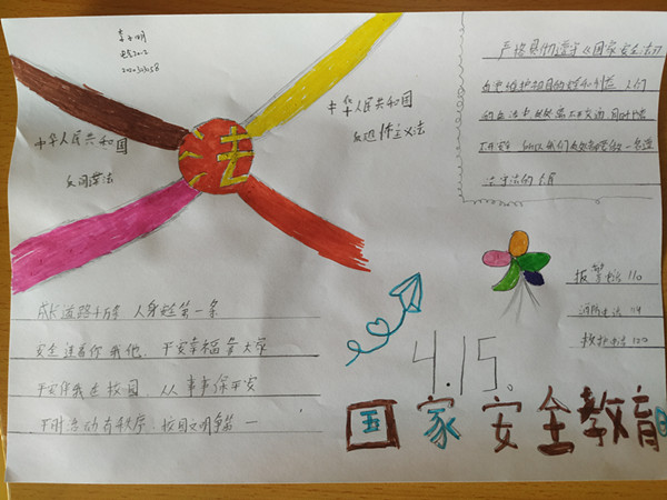 开展一次手抄报活动。为加强宣传教育和提升校园安全文化建设,切实增强师生国家安全意识,学院组织了一次制作国家安全日手抄报活动,极大地深化了同学们的防范意识和自护自救措施的落实。比赛共收到了来自一、二年级36个团支部共40余件作品,同学们用自己的画笔,表达内心对国家安全的理解。