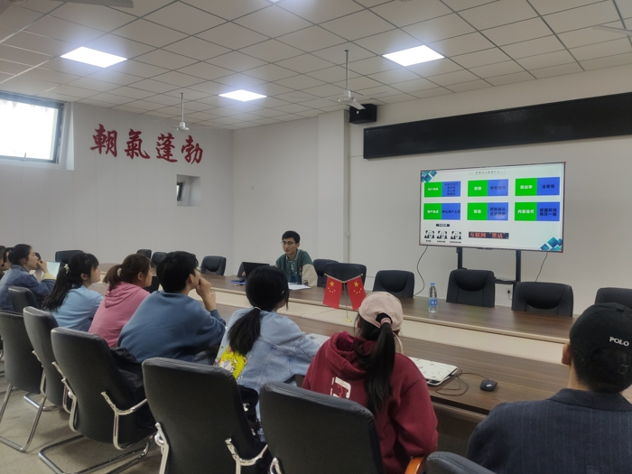舒云飞首先介绍了中国共产主义青年团的历史以及共青团宣传工作的重要意义,强调我们要关注当代青年的思想动态,特别是今年是中国共产党成立100周年,要加强党史宣传教育。他针对校园新媒体建设提出了“一个定位、两个大局、四种能力”的工作思路,介绍了各种新媒体平台以及影响该平台阅读量的因素,对使用该平台的年龄阶段分布、群体类型作了简要分析,提出提高阅读量、粉丝量的要点,同时讲解了微信公众号的运营和维护模式、新媒体的运营工具以及图片、微信排版使用的软件等,并讲述了如何分析获取、引导热点事件,引领学生思想。