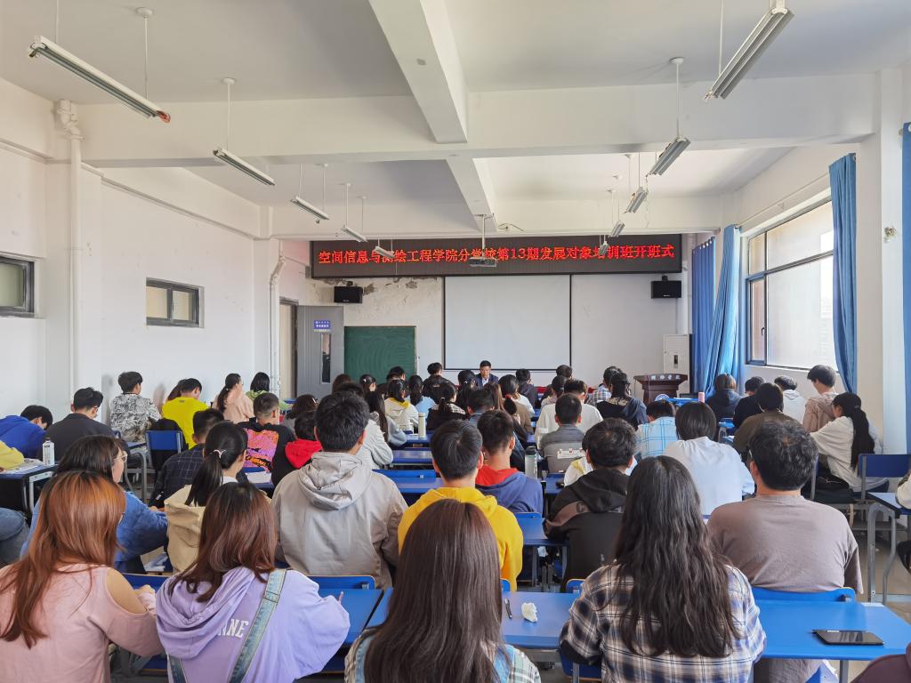 4月23日下午,空间信息与测绘工程学院在北512报告厅举行学院分党校第十三期发展对象培训班开班仪式。学院党委副书记刘瑞、培训班班主任、辅导员和发展对象70余人参加了开班式。