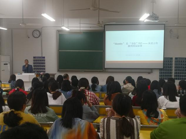 讲座中,袁周敏教授以“‘identity’是‘身份’吗?——从语言传播到国家叙事”为题,从词源学和语用学的视角出发,探讨了关于“identity”和“身份”的各自不同的意义内涵,指出西方“identity”注重的是个体的区别性特征,而我们中国的“身份”主要是指特定的社会地位。他还将中西方身份理论中的身份意涵进行了对比,从而指出我们要从身份研究的中国视角下,构建新的话语体系,希望可以补足西方视角下语用学关于“identity”的不足。最后,袁周敏阐释了国家叙事的四重话语空间,指出我们在平时写作时要注意语篇重构,同一个故事要采用不同的叙事体系。讲座结束后,袁教授与在场的师生进行了互动,耐心地回答了提出的问题。