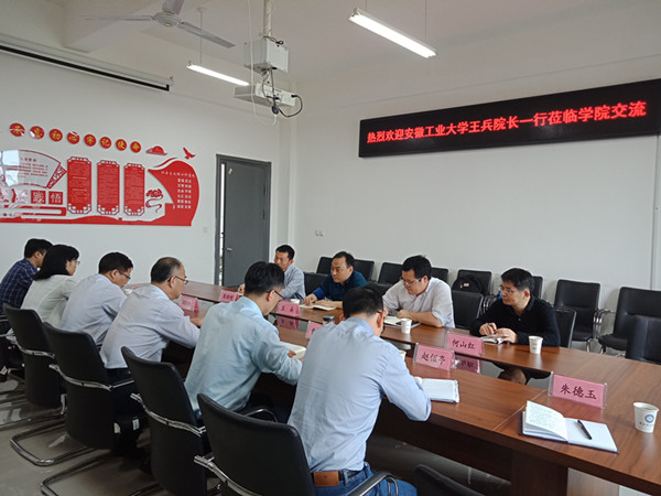 5月13日中午,安徽工业大学电气与信息工程学院院长王兵一行4人来电信学院交流学科与专业建设工作。学院执行院长周孟然在励行楼B415会议室接待了王兵一行,学院业务副院长欧阳名三、曹珍贯及相关专业系主任参加了交流会。