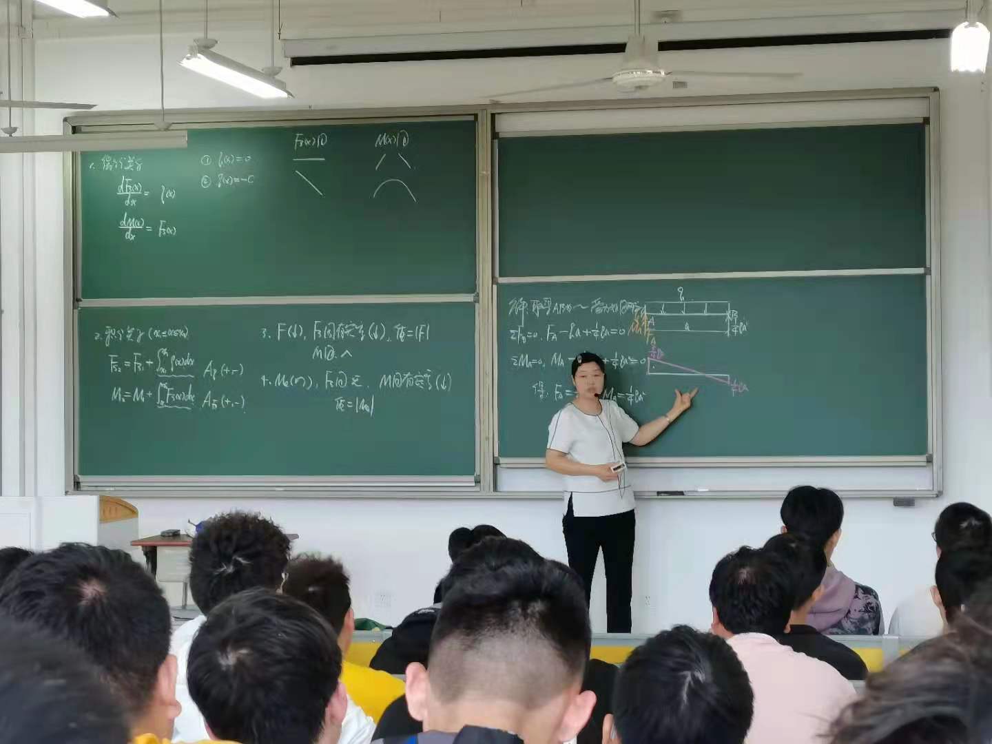 本次课程的主要内容为“载荷集度、剪力和弯矩间关系、弯曲内力图”,主要介绍了载荷集度、剪力和弯矩的微分和积分关系,以及如何利用三者关系快速准确地画出剪力和弯矩图。董春亮的课堂教学既严谨又活跃,上课前,同学们主动地将手机放置在教室两侧的收纳袋中,无一缺漏;课堂上,董春亮与所带19级地质3班和地下水1班的同学们全程互动,在轻松愉悦的环境中,巧妙地把枯燥晦涩的力学知识传授给了学生,展现出董春亮老师丰富的教学经验。