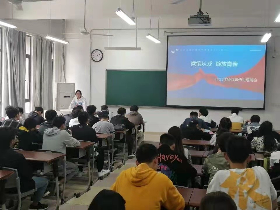 为做好2021年秋季征兵宣传动员工作,5月19日,计算机学院在天工南214教室召开征兵宣讲动员会,各年级辅导员、班级征兵宣传员和80余名参军意愿学生参加了会议。宣讲会通过线上直播的方式同步开展,100余名毕业班学生线上参加了会议。