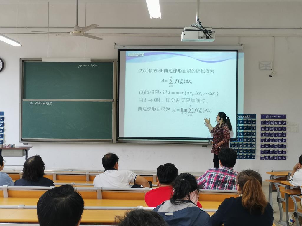 教学过程中,孙侠老师结合求曲边梯形的面积案例,采用问题导向教学、启发式教学等方法进行教学,思路清晰,重点难点突出,板书规范,对授课内容的熟练程度以及超强的课堂驾驭能力给在场的师生留下了深刻印象,使参与观摩的教师受益匪浅。