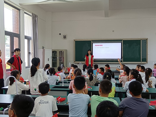 党史宣讲聚人心。为了帮助小学生们更好地学习了解党的光辉历史,电信学院的志愿者还开展了党史宣讲活动,志愿者带领孩子们重温狼牙山五壮士、刘胡兰等经典红色故事,并邀请同学们分享自己读过的党史小故事,分享自己在这些故事里的所感所悟,激发他们内心的爱党爱国之情。