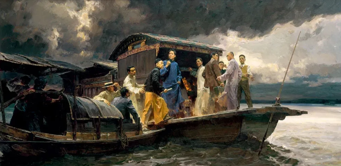 6月2日晚,学生党支部在求本楼B401举办“艺”心向党微党课,以分析经典的中国共产党史美术作品为引,以讲述相关党史故事为核心,将党史与经典美术作品相结合,以美为体,用一个个振奋人心的革命故事和生动鲜活的美术作品向学生再现中国共产党一百年来走过的光辉历程和不朽功勋,实现党史学习与美育的有机结合。中国美术馆藏何红舟的作品《启航——中共一大会议》再现了中共一大南湖会议登船启航的这一历史瞬间,在画面中,毛泽东处于构图的中心,显得意气风发。远处东方的曙光,与游船上的中共一大代表们融为一体,暗喻了革命曙光的显现。黑暗与光亮,乌云的压迫力与代表们的坚强意志,形成了鲜明的对比,从而进一步表现出了革命的艰难和党的创建者们英勇无畏的精神。