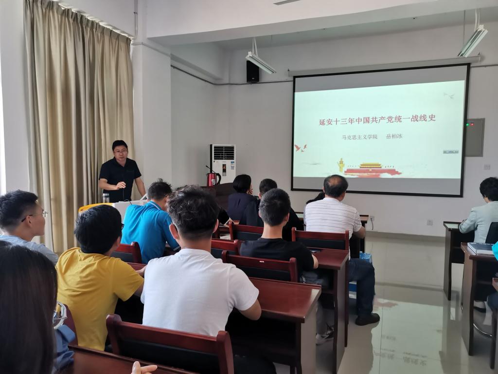 岳柏冰副教授以“延安十三年中国共产党统一战线史”为题,详细解读了延安时期统一战线的发展历程、延安时期统一战线理论的基本内容、上层统一战线策略与国民党高层人士来延安、统一战线与爱国华侨、国际反法西斯统一战线与国际友人等方面内容。从1935年到1948年,中国共产党在延安一共经历了十三年,延安十三年是中国共产党不可或缺的重要历史时期,是中国社会发展的一个重要时期,是党的理论发展和完善的重要时期,也是毛泽东思想得以建立的重要时期,通过对延安十三年中国共产党的奋斗历程的认识,感悟到了战争年代老一辈革命者的高尚品格与坚强不屈的意志,体会到了传承不息、内涵丰富的延安精神。