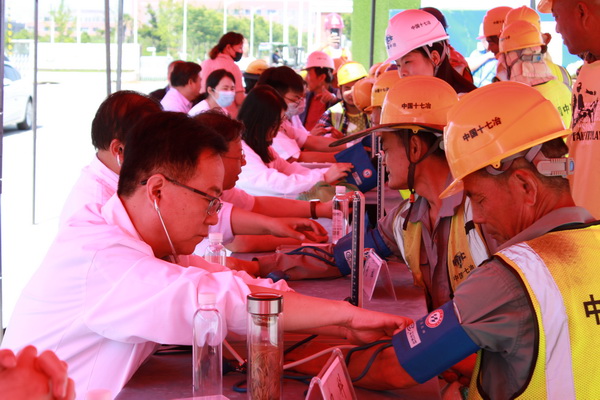 在“安理家园”西门前,党员师生们发挥专业优势,为一线施工人员量血压、测血糖,并就内科、外科、皮肤科、五官科等方面的健康咨询,仔细进行义诊义检,有针对性地提供治疗建议和健康科普宣传。为应对夏季高温天气下作业的需要,还向施工人员免费发放了清凉油、风油精、酒精、创可贴、碘伏、眼药水等防暑降温和外伤消毒用品,结合实际为群众办实事、办好事。活动现场近百名施工人员参与了此次医疗便民服务。