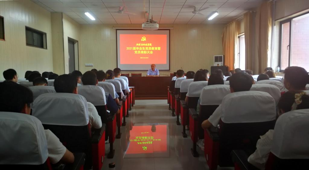 会上,盛鹏飞介绍了学院一年来在党建和事业发展方面取得的成绩,结合党史学习教育,为全体毕业班党员进行最后一次党课教育。他寄语2021届毕业生党员:要不忘初心,牢记党员身份,自觉加强理论学习,用马克思主义世界观和方法论指导自身工作;要紧紧把握党史学习教育的“明理、增信、崇德、力行”要求,悟思想、办实事、开新局;要永保共产党员先进性,立足岗位,争做社会主义核心价值观引领者、刻苦学习的示范者、志愿服务的践行者和爱校荣校的参与者;要牢记校训和校园精神,积极传承“明德、笃行、求真、创新”的院训,未来在新的岗位上践行初心使命,砥砺奋进。