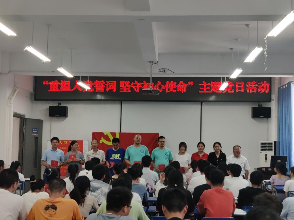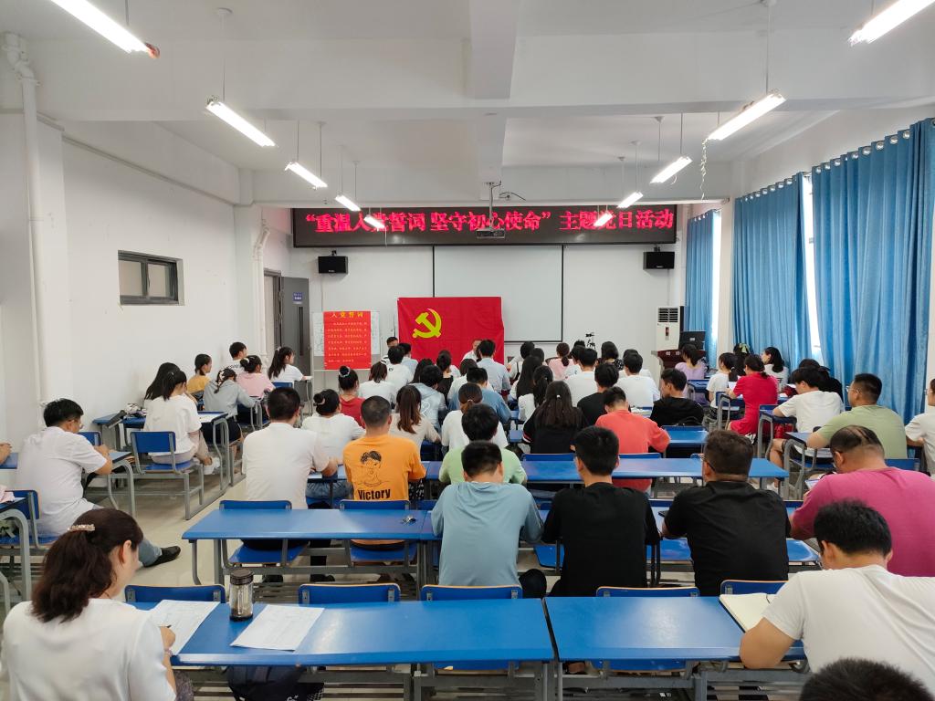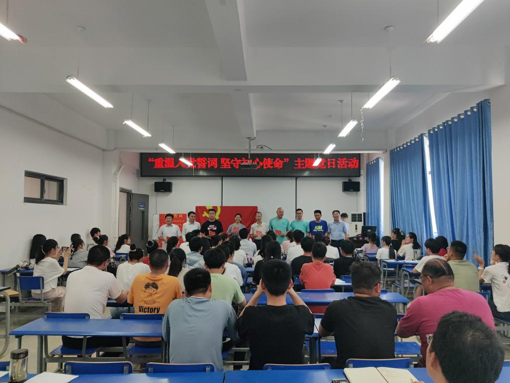 活动以铿锵恢宏的入党誓词拉开帷幕,面对鲜红的党旗,全体党员一起高举右手,庄严宣誓:“我志愿加入中国共产党……随时准备为党和人民牺牲一切,永不叛党。”现场激昂的宣誓声音,强烈震撼着在场的每一位党员,一字一句,神圣而豪迈,抒发了每位党员对党忠诚的决心。